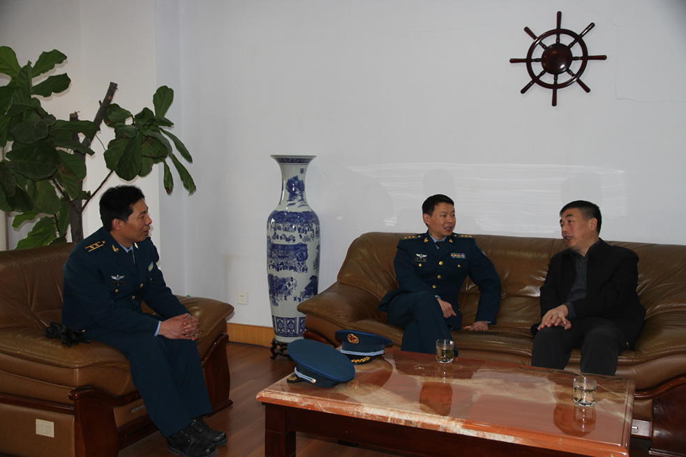 駐濰空軍某部部領(lǐng)導(dǎo)來公司走訪慰問,程亞利總經(jīng)理與部隊