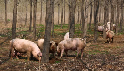 禹田生態(tài)放牧豬每天都是自己跑到山上去采食,在山上吃些雜草、作物秸稈和一些野果等。這些放牧豬每天在山上的活動(dòng)時(shí)間是八個(gè)小時(shí)以上,吃完了撒個(gè)歡兒、賽個(gè)跑、洗個(gè)泥巴浴,日子過得無拘無束、悠然自得。散放飼養(yǎng)的豬要在山上長(zhǎng)一年之后才會(huì)屠殺,完全是原生態(tài)自然生長(zhǎng),從未喂過含任何快速生長(zhǎng)激素的合成飼料。