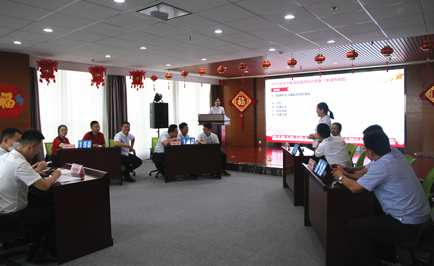 9月28日,在國慶節來臨之際公司組織“迎國慶知識競賽”,各板塊共派出12支隊參賽。比賽答題以“學習強國”題庫為主,以“企業文化、培訓學習”內容為輔,通過必答題、搶答題等環節,進一步增強了員工的愛國情操與敬業意識。